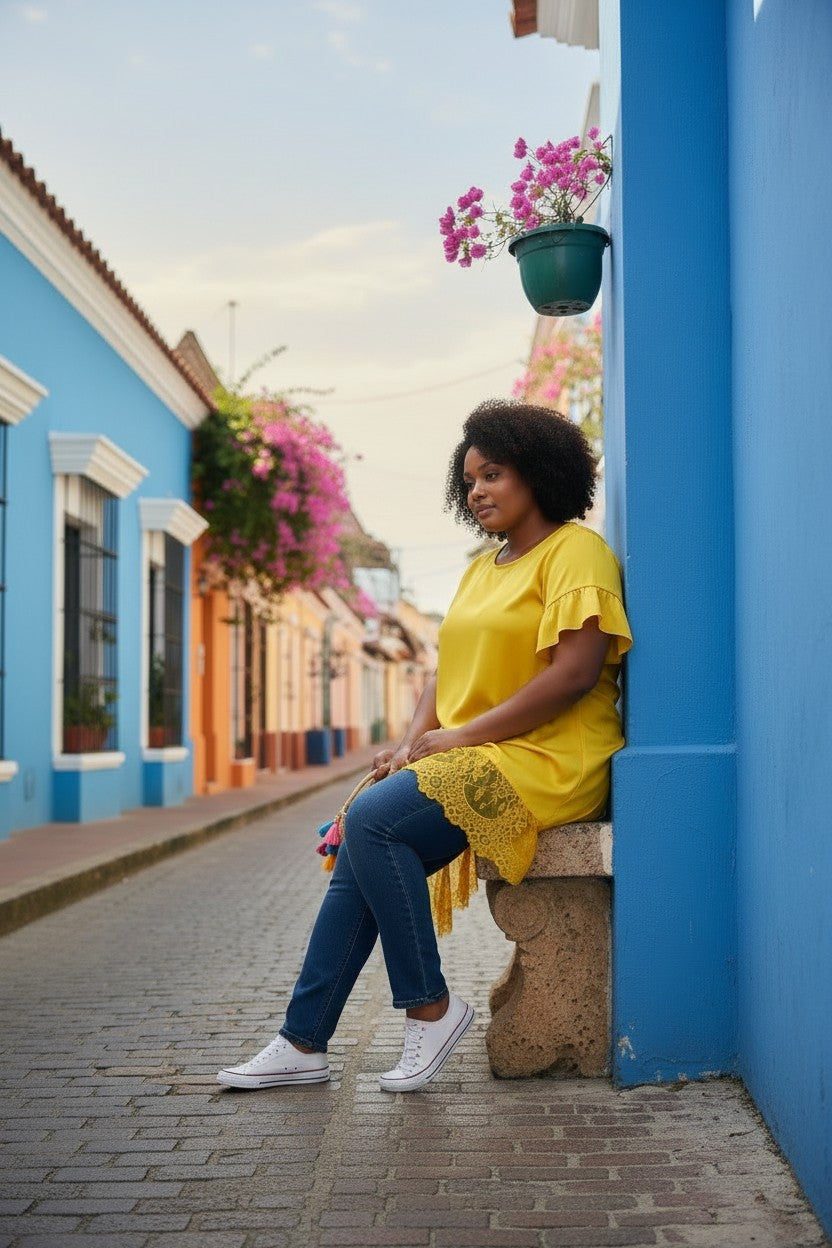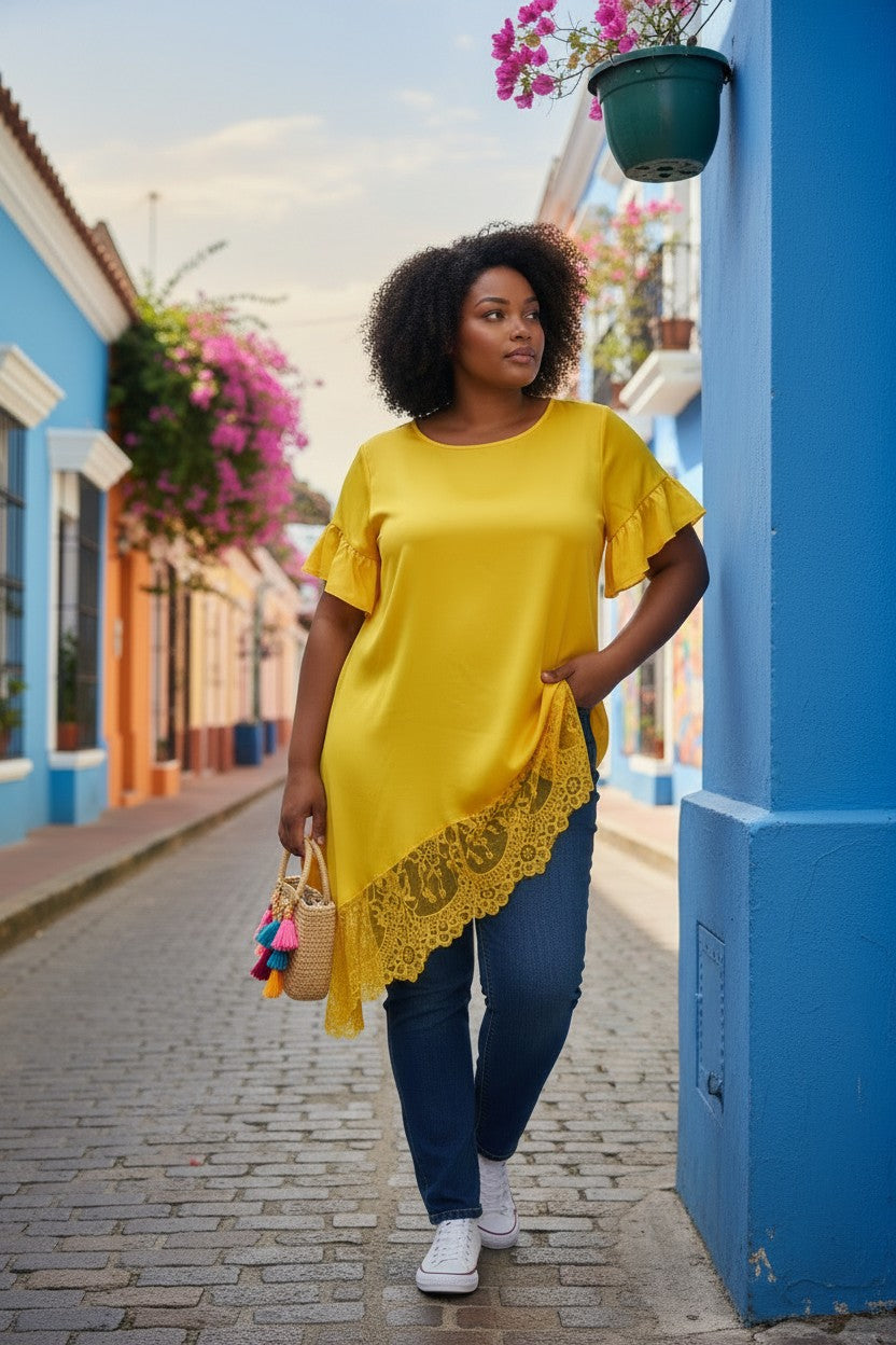 flot gul blonde tunika fra little italy.