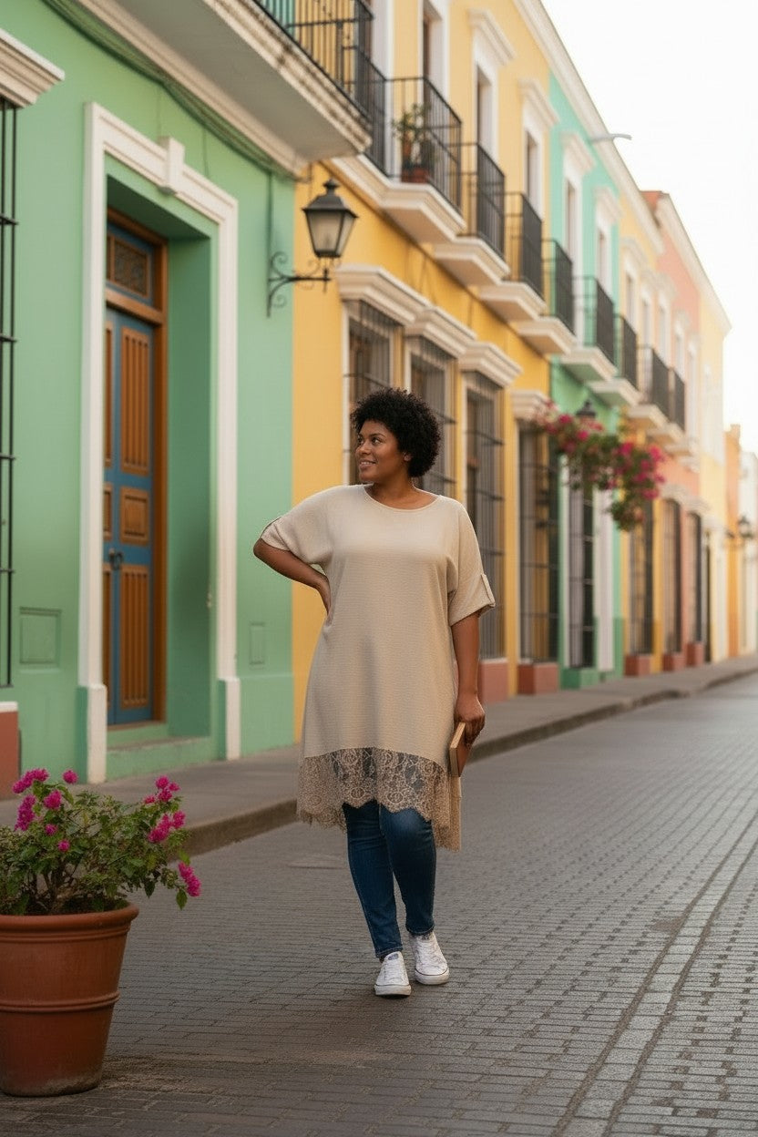 flot sand farvet blonde tunika fra little italy.