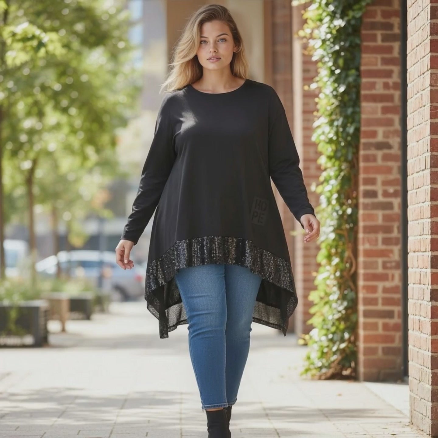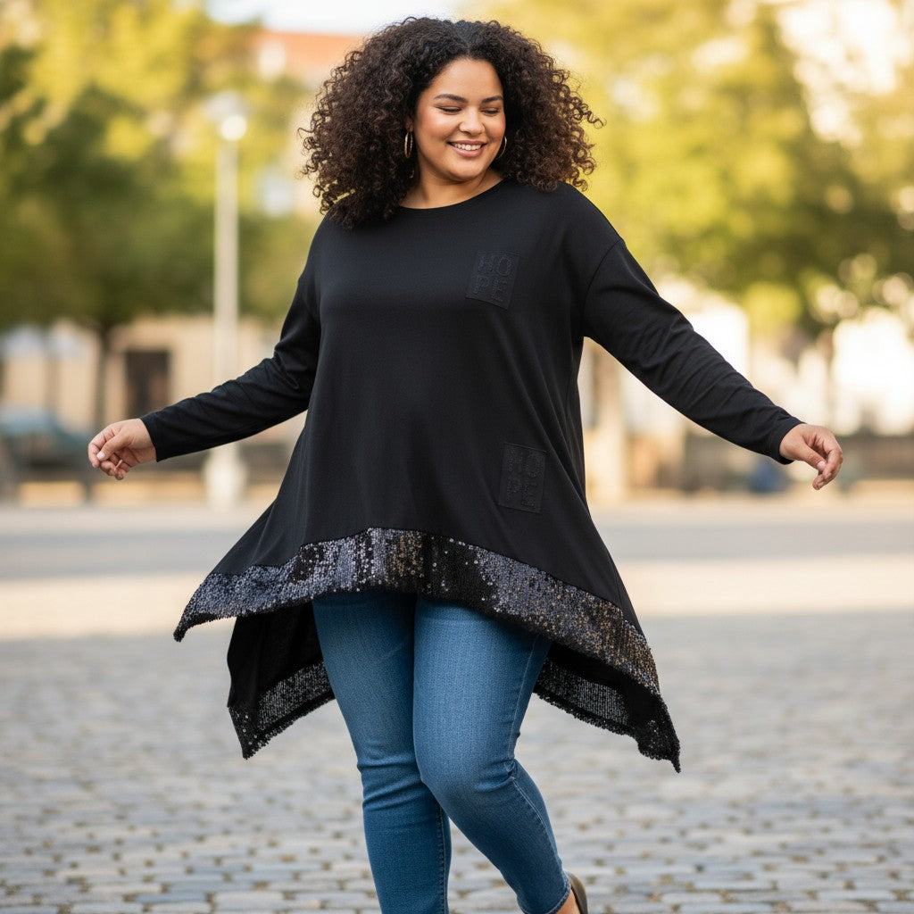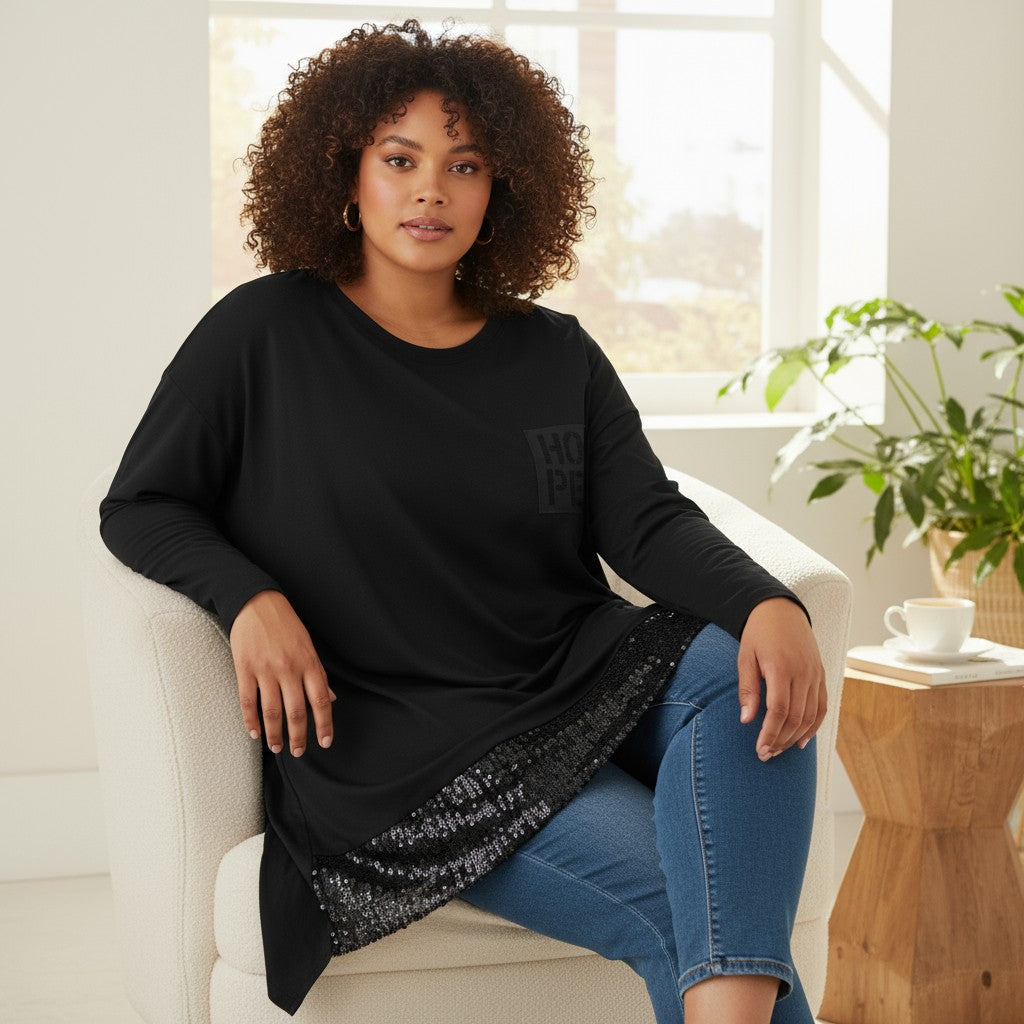 FLOT SORT TUNIKA MED PALIETTER FRA LITTLE ITALY.
