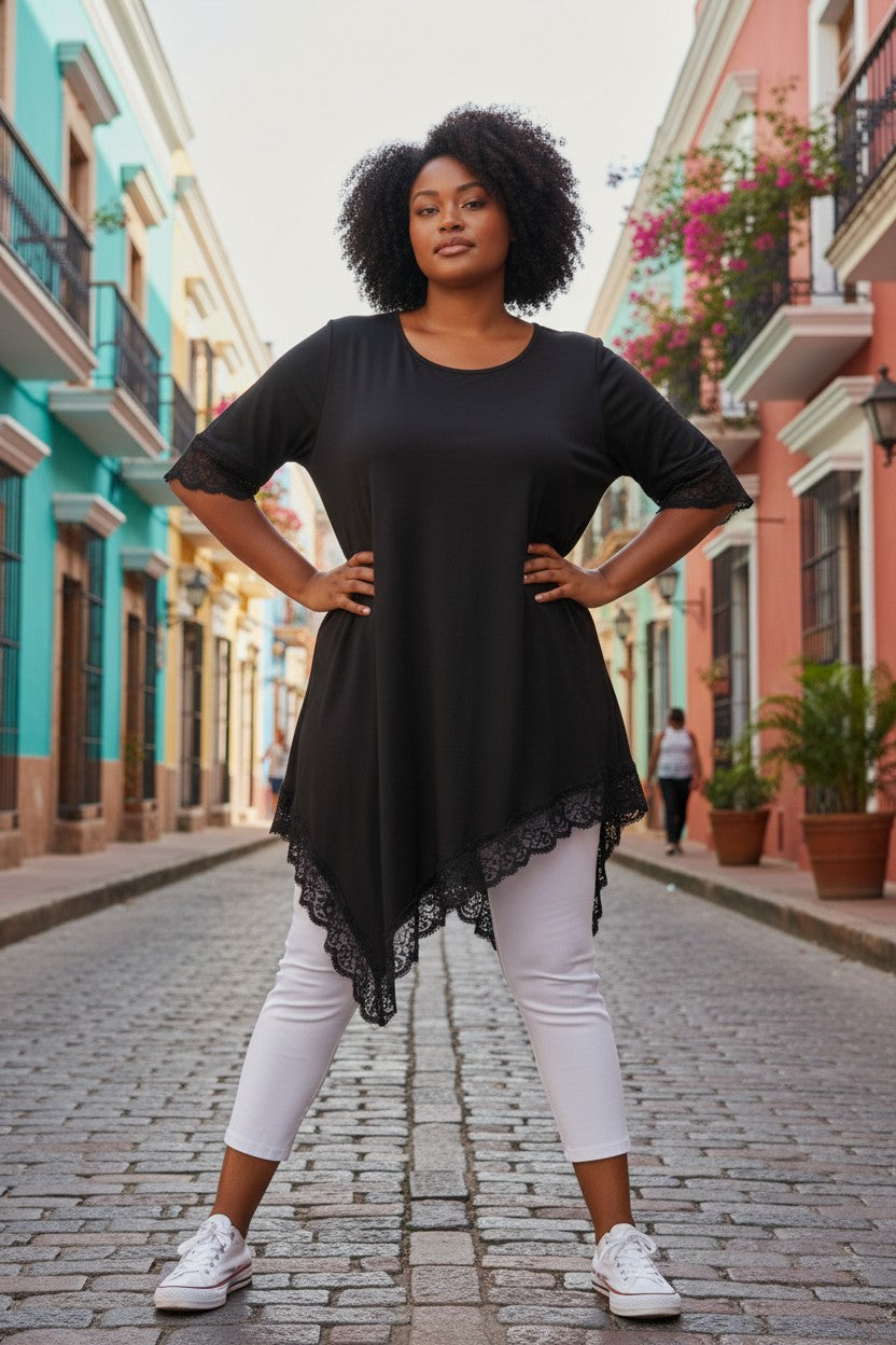 korte ærmer med blonde kant.