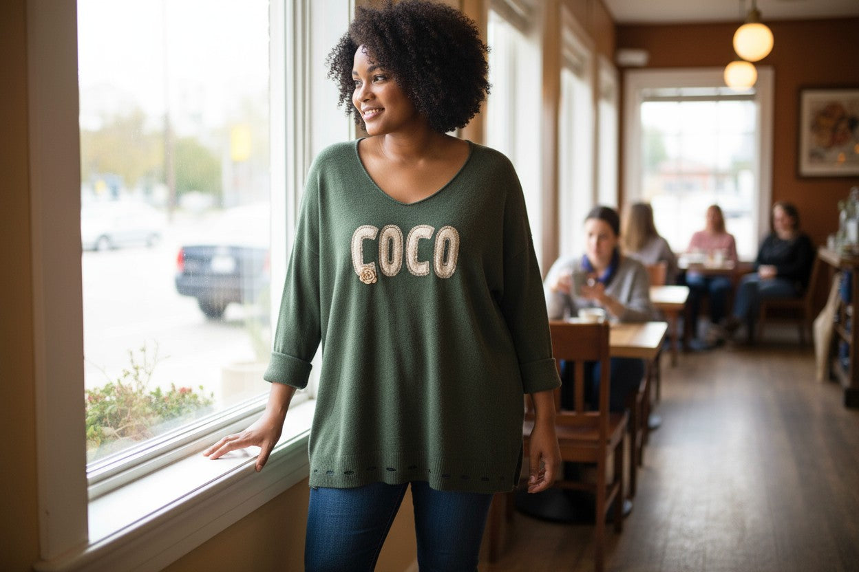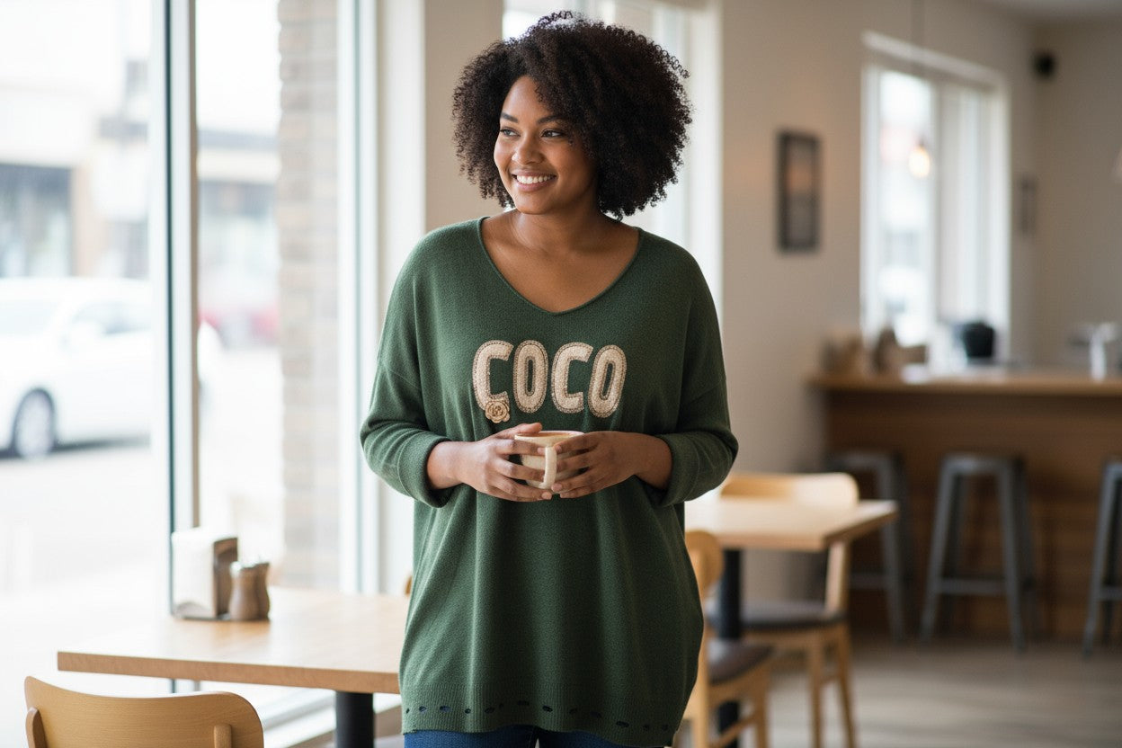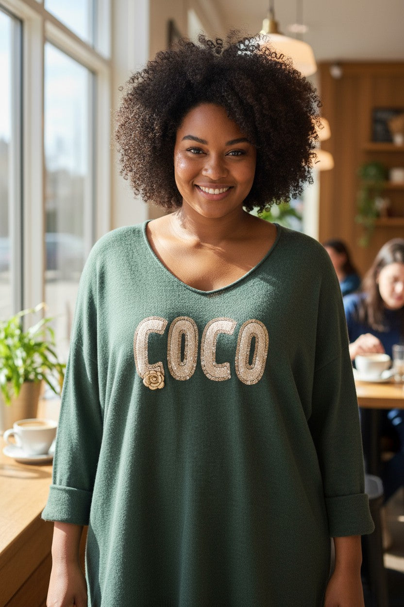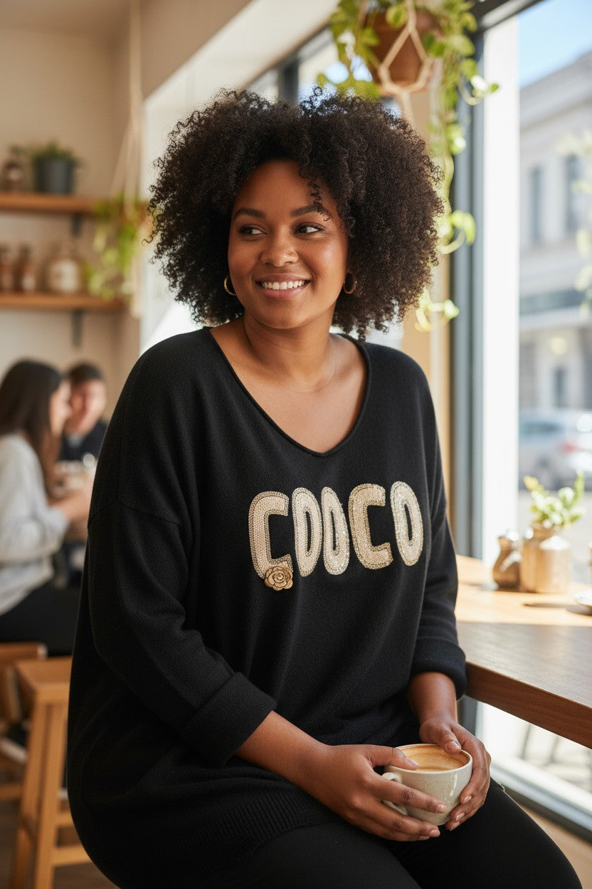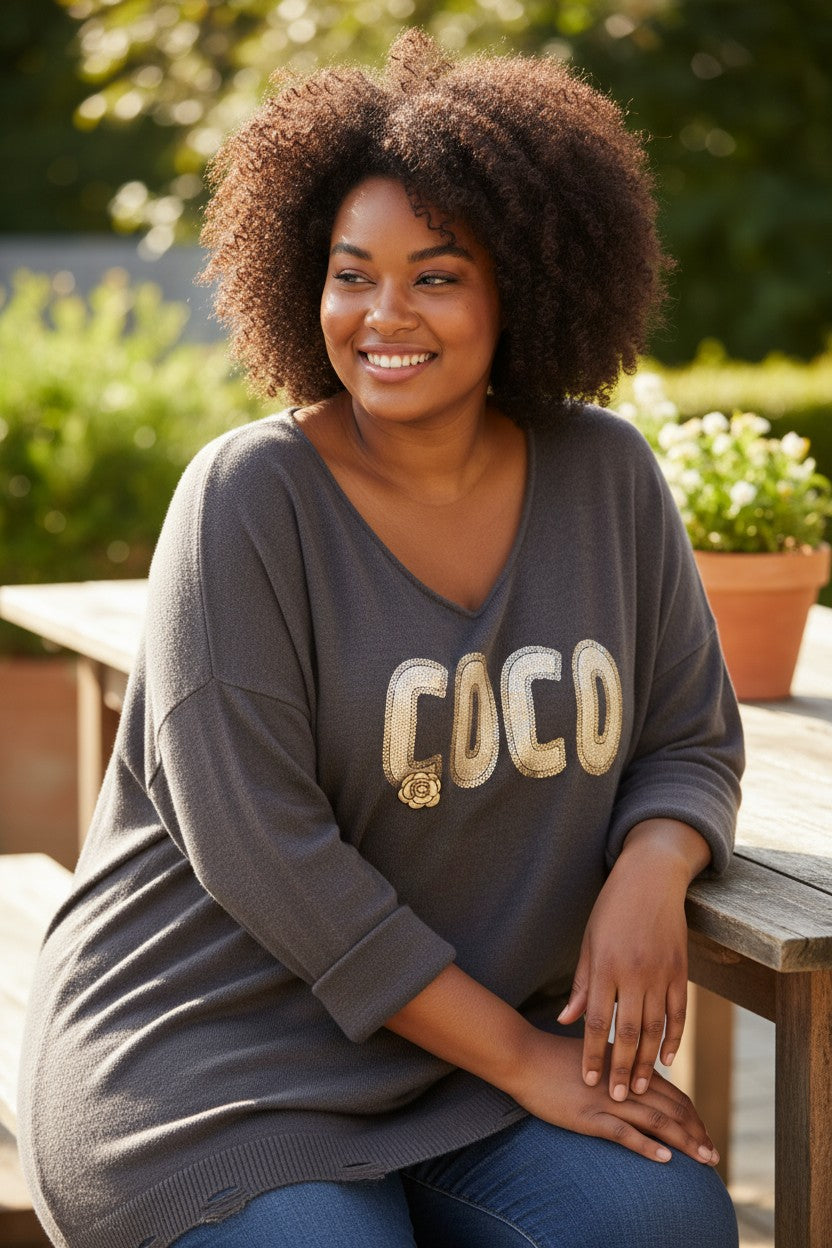 medfølger flot guld rose broche som kan tages af og sættes hvor man vil på trøjen.