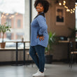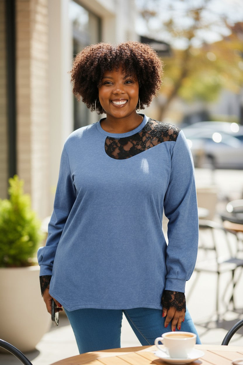 lækker blå sweatshirt med sorte blonder fra little italy.